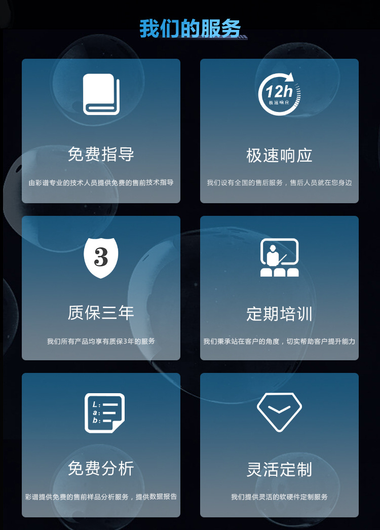 | 可選附件 | 加熱透射夾具(含控制電路)、立式支架、氣動(dòng)頂桿(含控制電路)、小樣品夾持配件、拉桿箱、歐標(biāo)插頭、美標(biāo)插頭 反射比色皿支架耐腐蝕防護(hù)板(不可拆卸)、纖維測試盒、薄膜夾具、微量透射夾具、 |