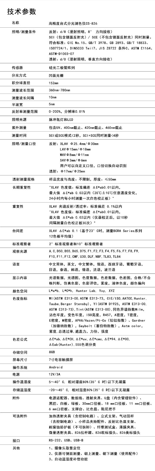 CS-826高精度臺(tái)式分光測(cè)色儀