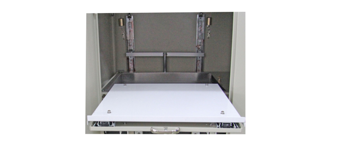 試驗(yàn)完成后,一般可把活動(dòng)托板處于打開待工作狀態(tài),如果儀器長(zhǎng)期不用而需要關(guān)閉前門,需要將活動(dòng)托板復(fù)原到初始位置,方法如下。
