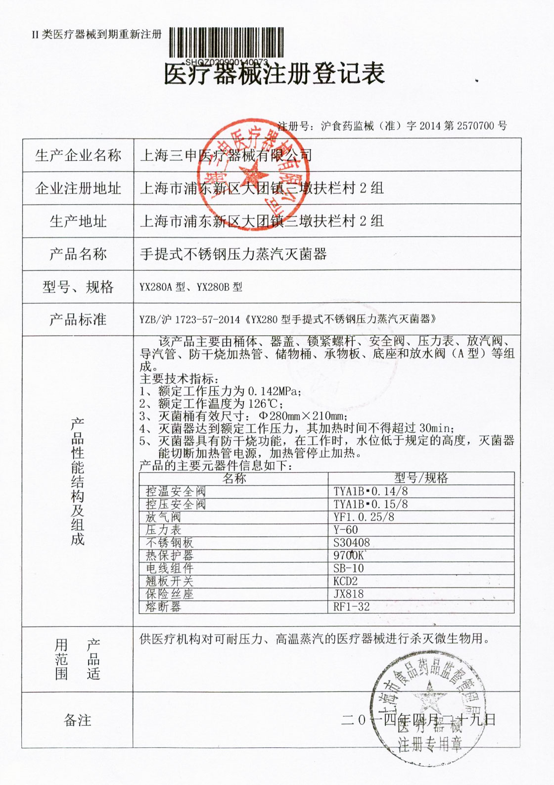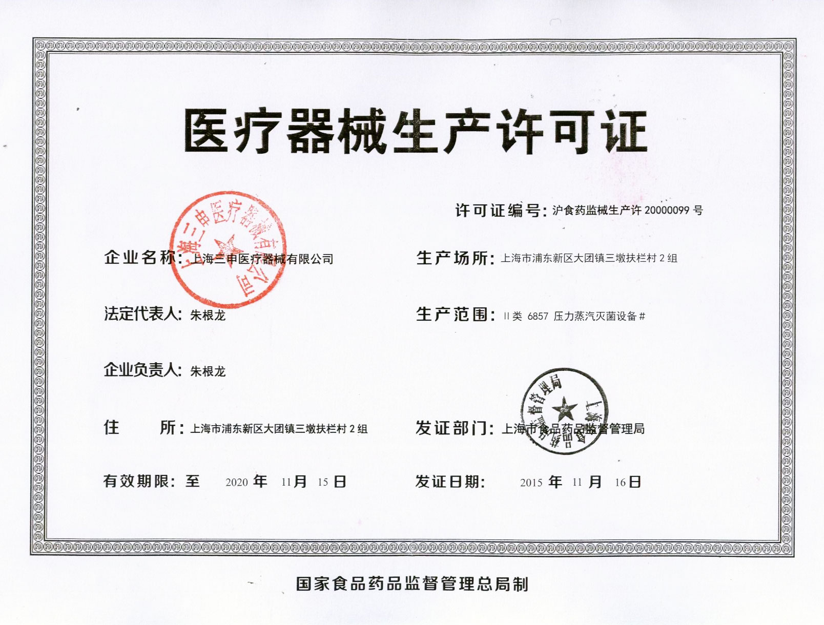 - 有醫(yī)療器械產(chǎn)品注冊(cè)證和特種設(shè)備制造許可證(壓力容器)